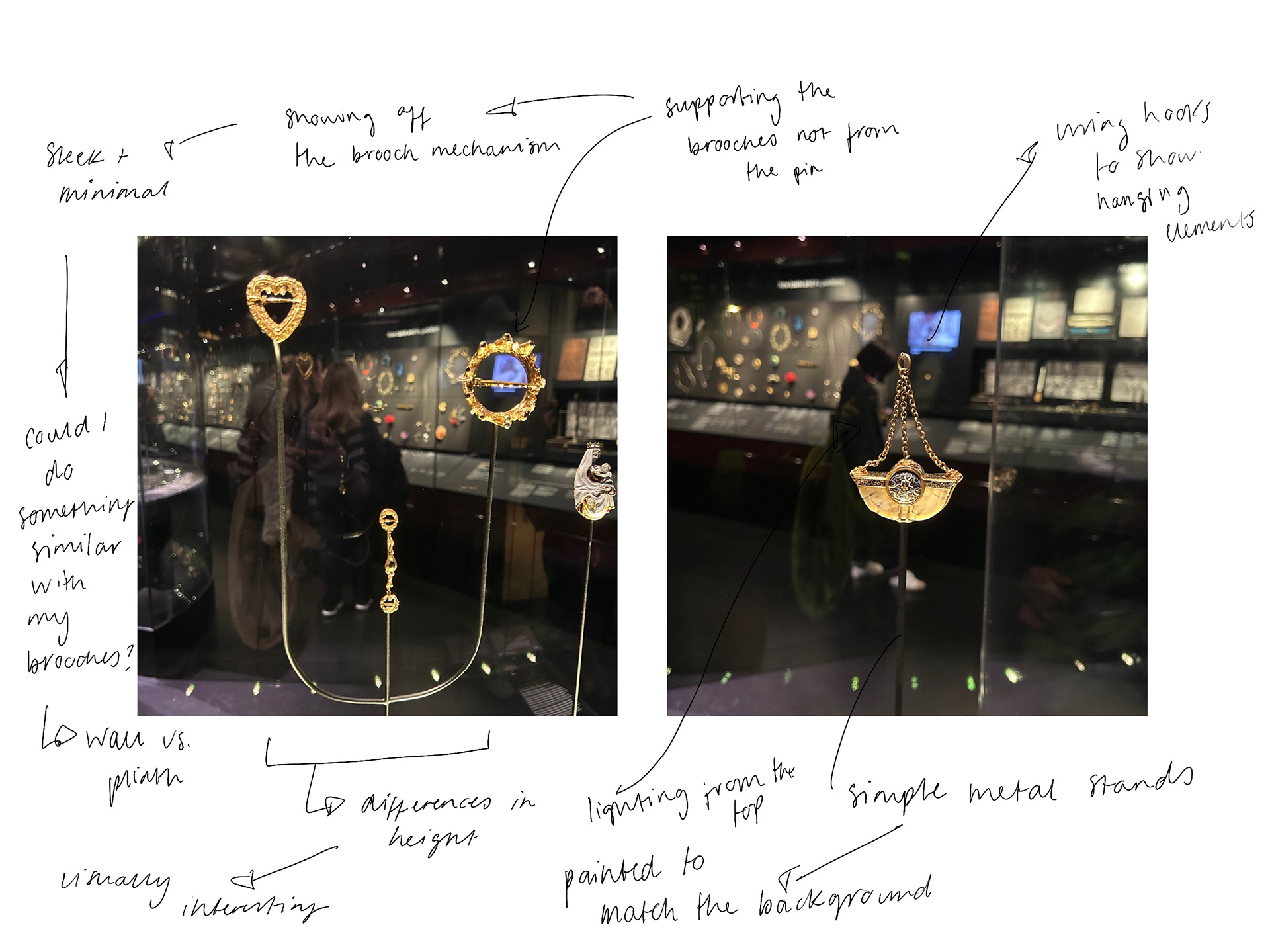 While in London, a few of us took the opportunity to visit the V&A Museum. For me, the visit was less about drawing inspiration from specific pieces and more focused on the displays from a curatorial perspective. I was particularly interested in how the jewellery was presented, how lighting, layout, materials, and spatial design were used to showcase the work.
