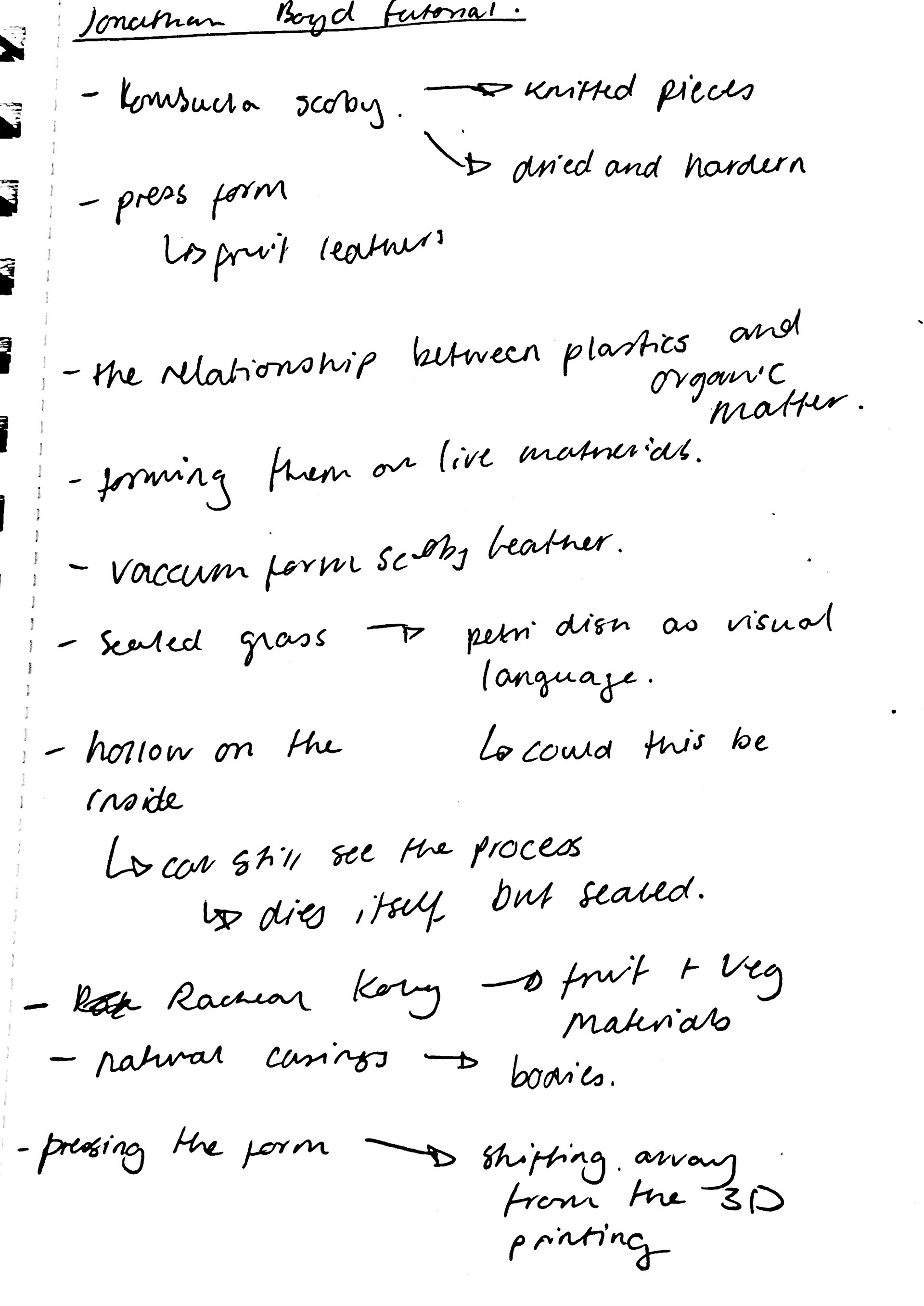 We spoke about how the bacteria is freezing an moment in time, which has lead me to think more about the concept of time in my project. While I am not quite sure what this means yet, it is definitely something I am open to exploring more.