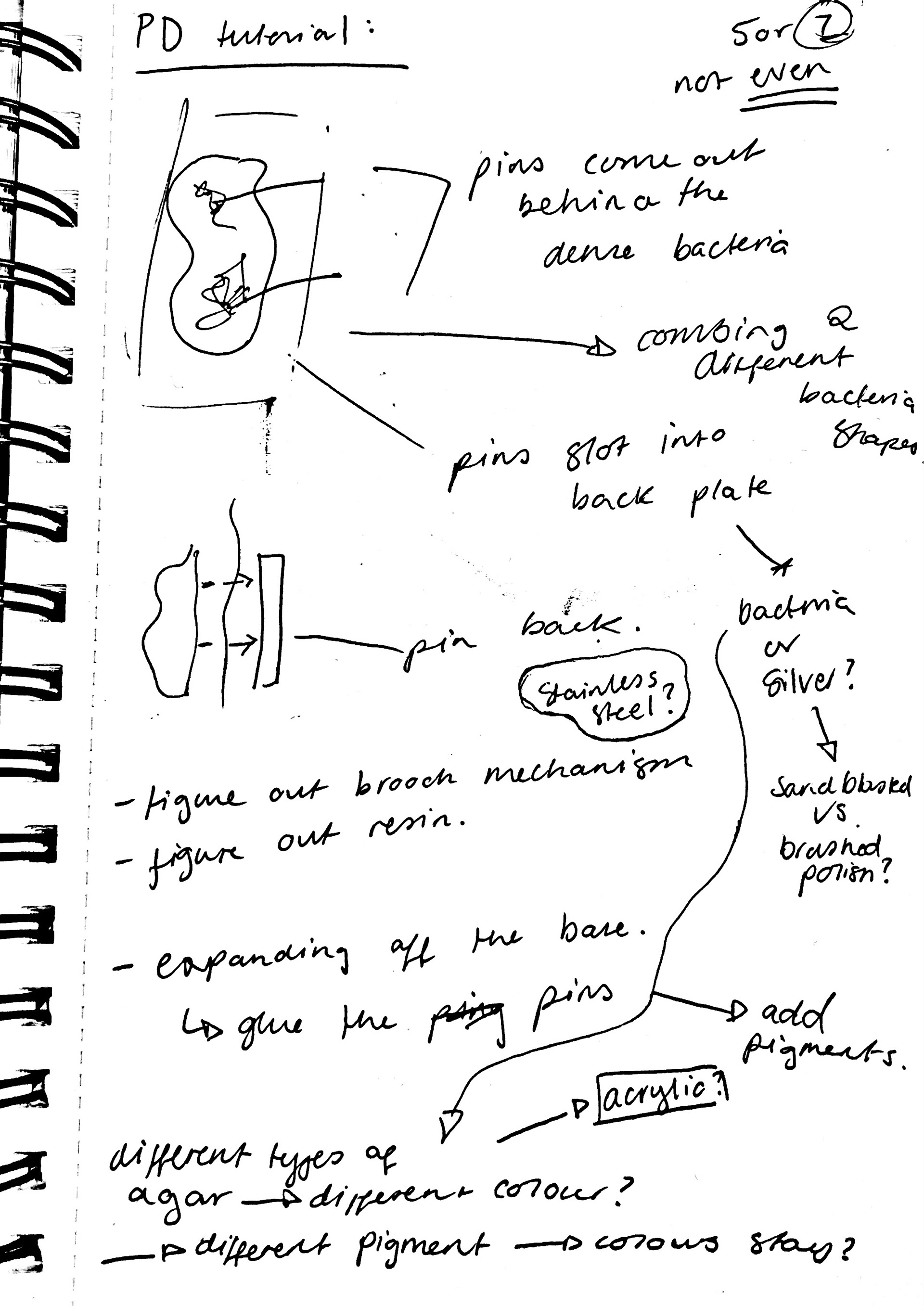 During my tutorial with Patricia, we examined my final pieces from Unit X. We both agreed that the simple brooch with the chain worked a lot better and that was because of how simple it was. We spoke about how I should continue to use simplistic designs in my work, and let the bacteria speak for itself.