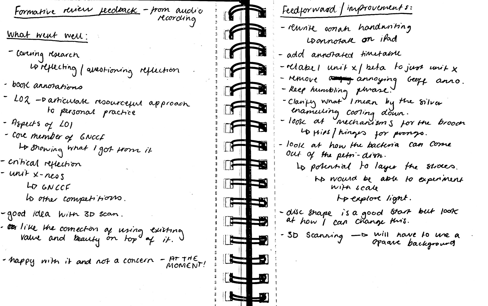After my formative review with Geoff, I went through the audio recording and wrote down the points said.