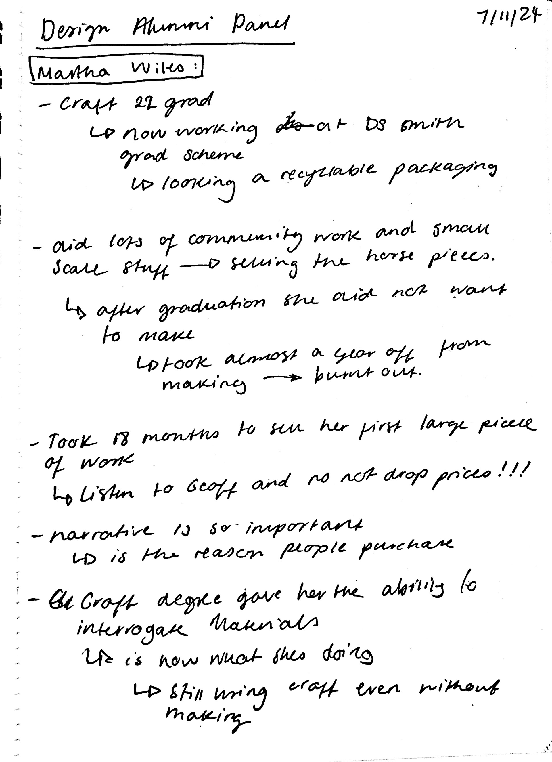 Hearing about her own struggles with making after graduation was reassuring, as I am currently questioning my own path. I’m uncertain whether I want to continue with a steady focus on making or take a step back for a while, giving myself a chance to recharge and return with a fresh perspective on where I want to take my career.
